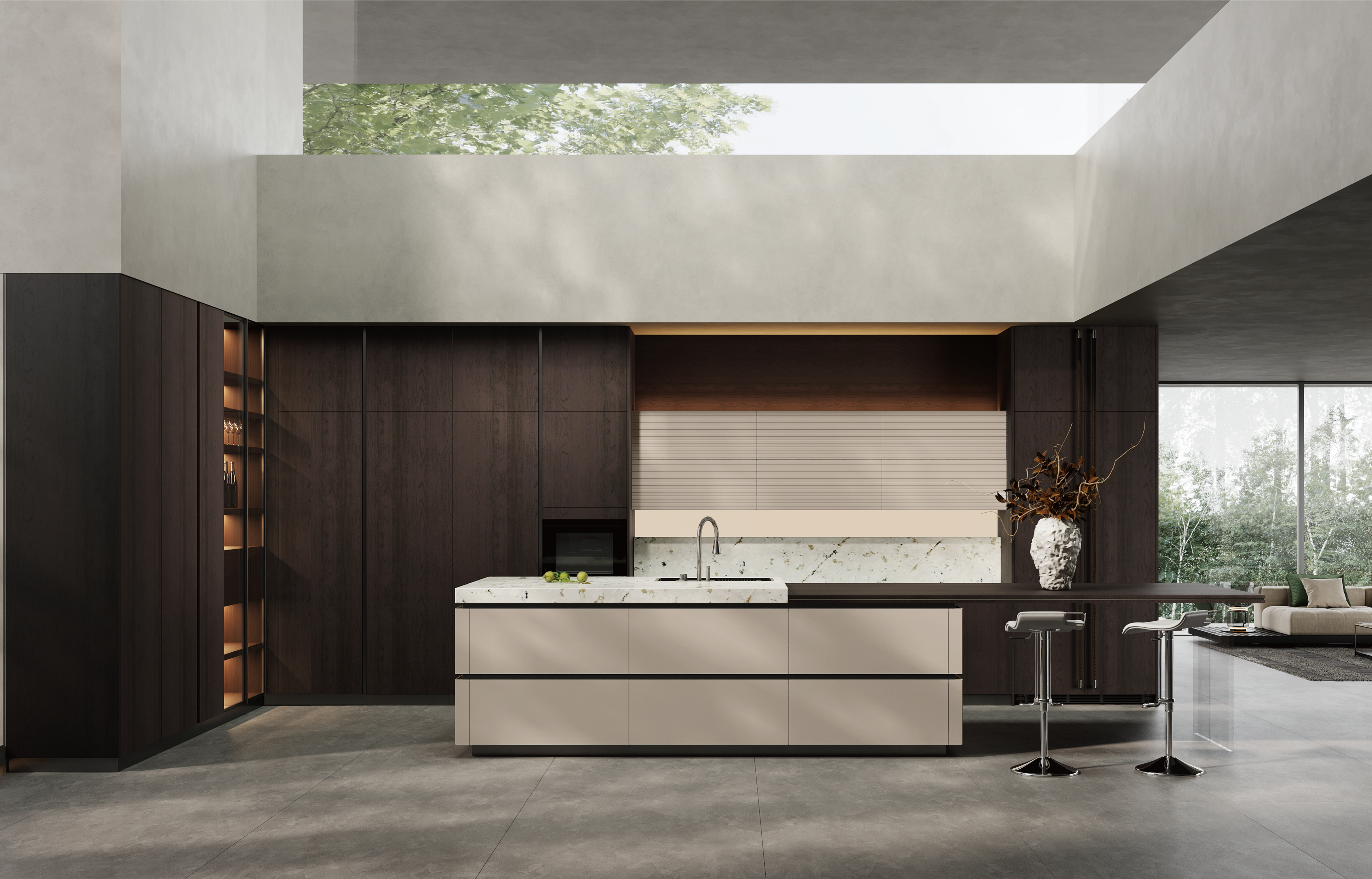 通过xcsports厨柜量体裁柜,定制出适合主厨下厨的烹饪区和洗涤区的舒适高度。